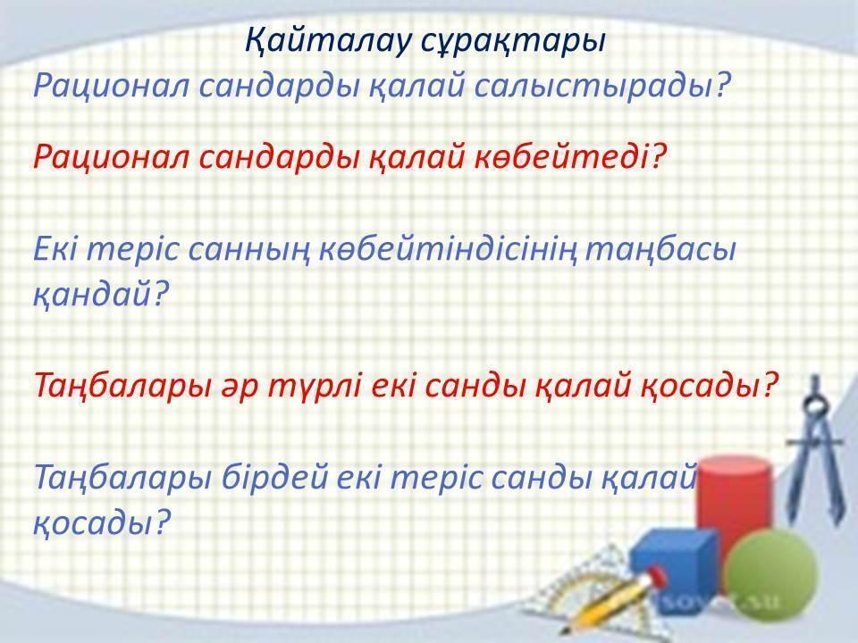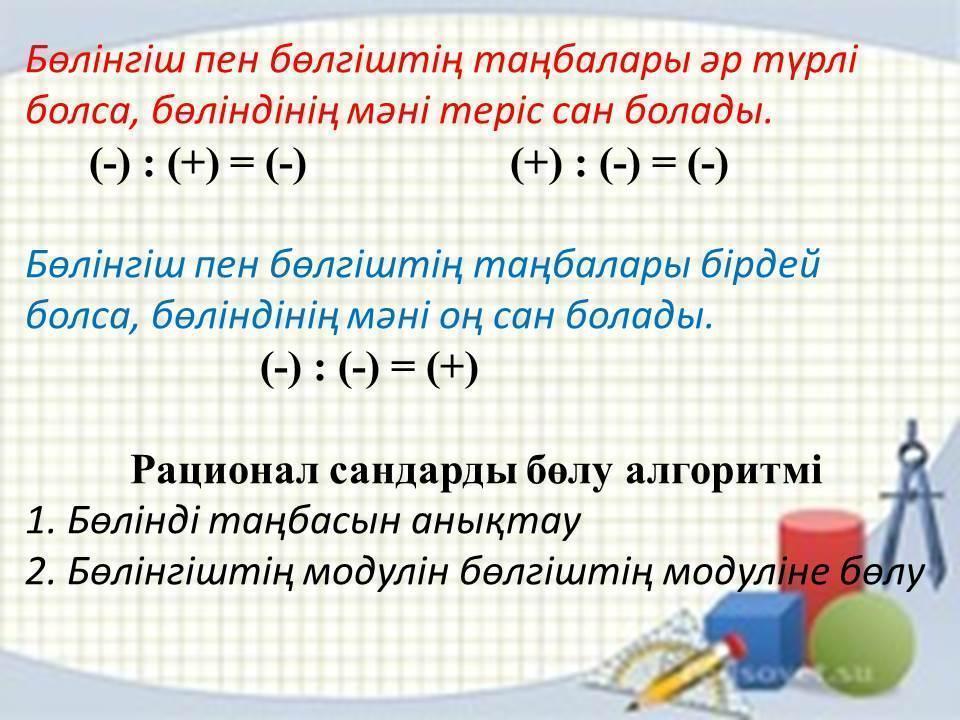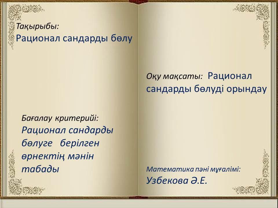 Рационал сандарды бөлу » АЛМАТЫ ОБЛЫСЫ БІЛІМ БАСҚАРМАСЫНЫҢ ТАЛҒАР АУДАНЫ БОЙЫНША БІЛІМ БӨЛІМІ МЕМЛЕКЕТТІК МЕКЕМЕСІНІҢ “ЖАМБЫЛ ЖАБАЕВ АТЫНДАҒЫ №6 ЖАЛПЫ БІЛІМ БЕРЕТІН ОРТА МЕКТЕБІ” КОММУНАЛДЫҚ МЕМЛЕКЕТТІК МЕКЕМЕСІ