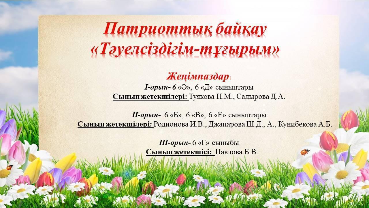 "Жас мамандар" мектебінің онкүндігі » АЛМАТЫ ОБЛЫСЫ БІЛІМ БАСҚАРМАСЫНЫҢ ТАЛҒАР АУДАНЫ БОЙЫНША БІЛІМ БӨЛІМІ МЕМЛЕКЕТТІК МЕКЕМЕСІНІҢ “ЖАМБЫЛ ЖАБАЕВ АТЫНДАҒЫ №6 ЖАЛПЫ БІЛІМ БЕРЕТІН ОРТА МЕКТЕБІ” КОММУНАЛДЫҚ МЕМЛЕКЕТТІК МЕКЕМЕСІ