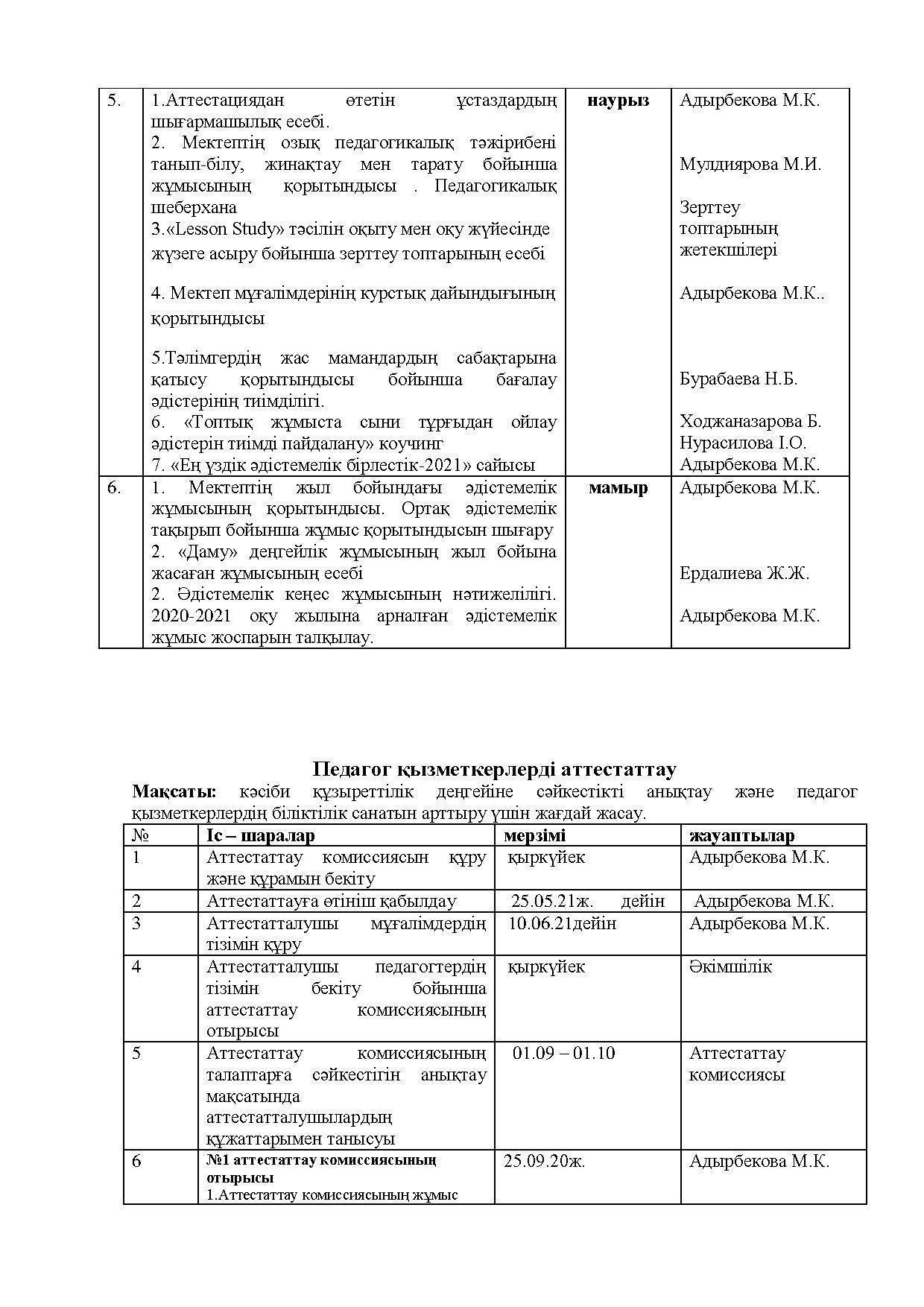 Әдістемелік жоспар 2020-2021 оқу жылы