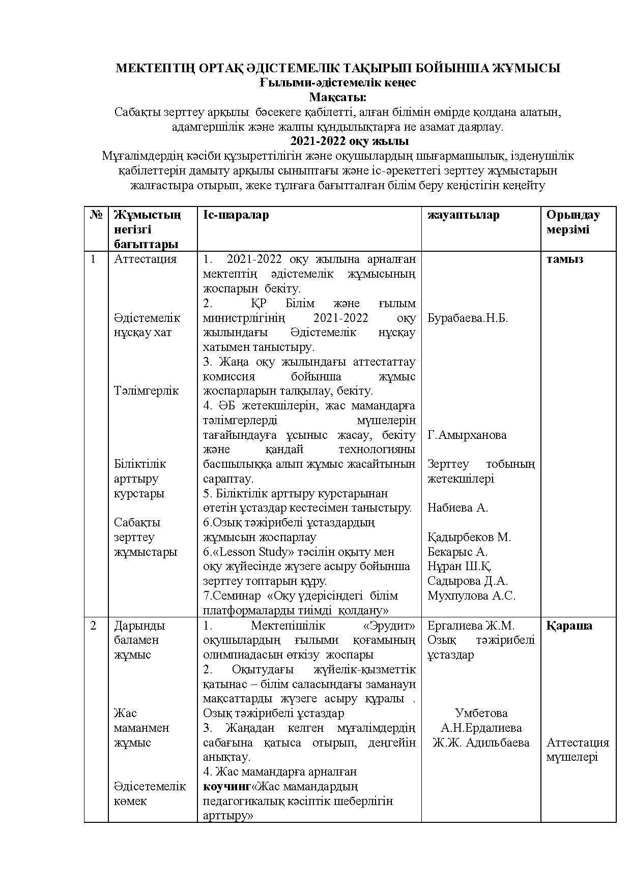 МЕКТЕПТІҢ ОРТАҚ ӘДІСТЕМЕЛІК ТАҚЫРЫП БОЙЫНША ЖҰМЫСЫ
