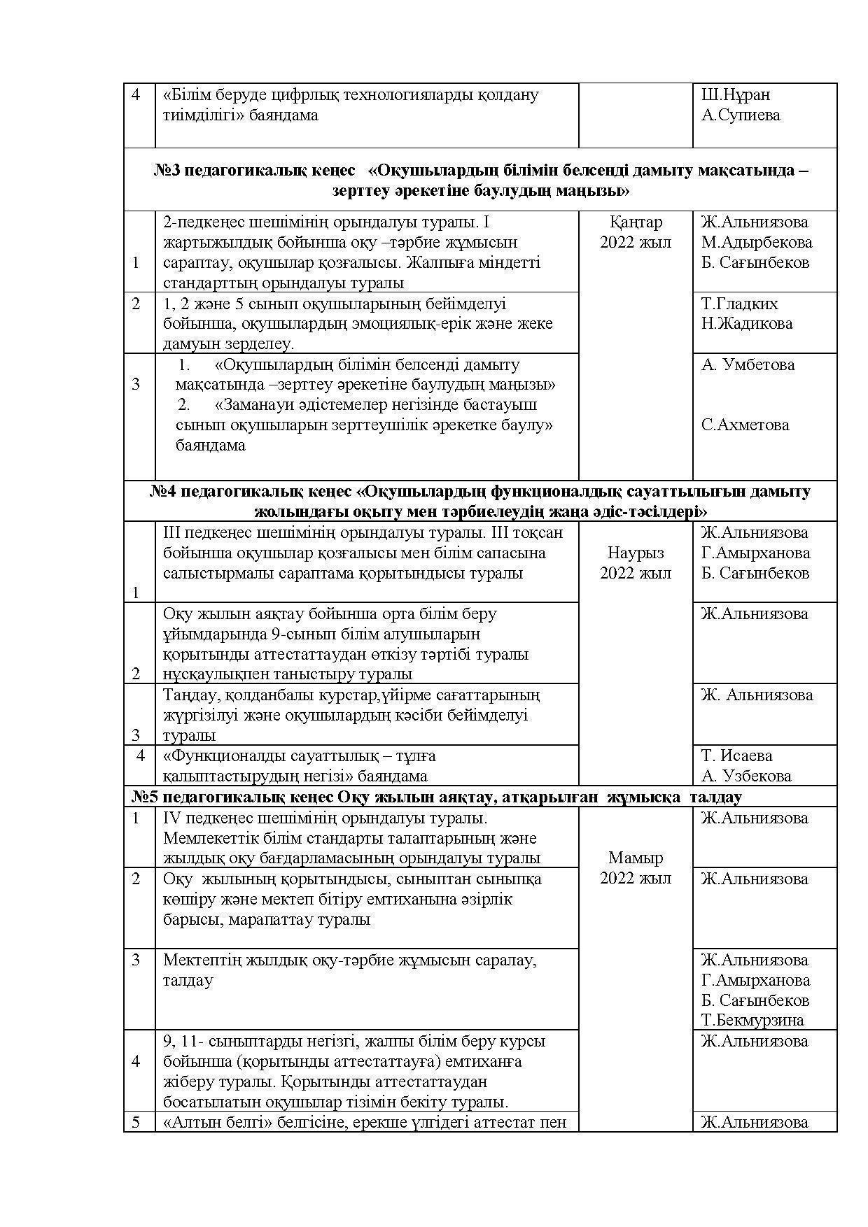 2021 - 2022 ОҚУ ЖЫЛЫНЫҢ ПЕДАГОГИКАЛЫҚ КЕҢЕСІ