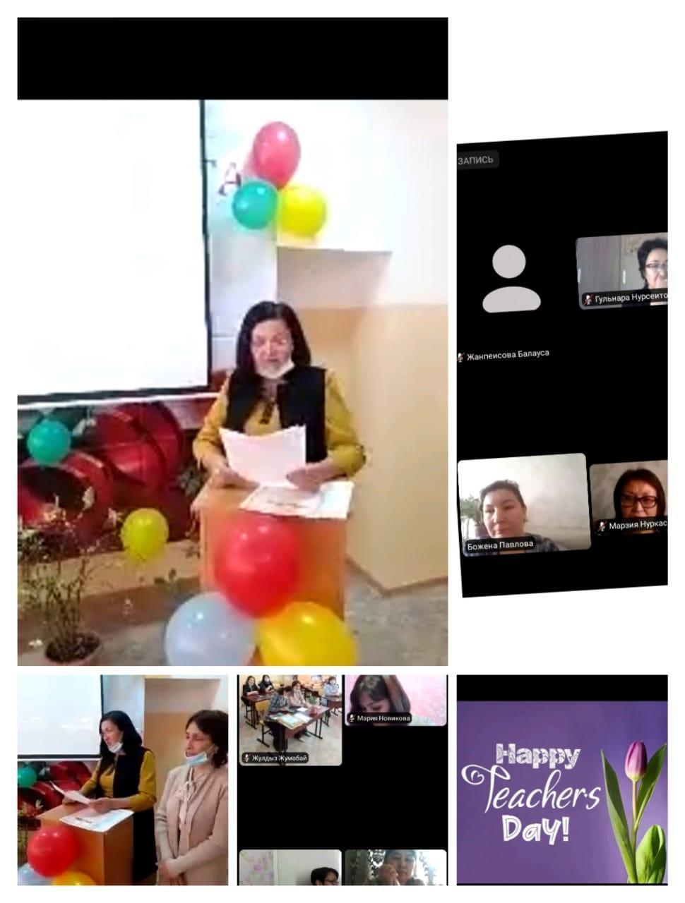 Ұстаз деген жарық күні ғаламның! атты ұстаздар мерекесіне орай ZOOM платформасымен мерекелік шара өтті. Зейнеткер ұстаздарымызды, аудандық, мектепішілік алғыс хат пен марапатталған ұстаздарымызды құттықтадық. Жас мамандарымыздың дайындаған бейне-ролигі көрсетілді