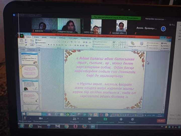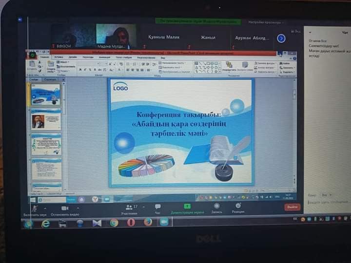 Қазақ тілі мен әдебиеті пәні мұғалімі Мулдиярова Мадина Илеусизовна конференцияның мақсат міндеттерімен таныстырып өтті. Екінші сөз алған ,кітапхана қызметкері Адыбаева Назгул Дунгенбаева. Ол өз сөзінде "Адам баласы адам баласынан ақыл,ғылым, ар, мінез деген нәрселермен озбақ"-деген ұлы ойшыл Абай атамыздың сөзімен бастады.