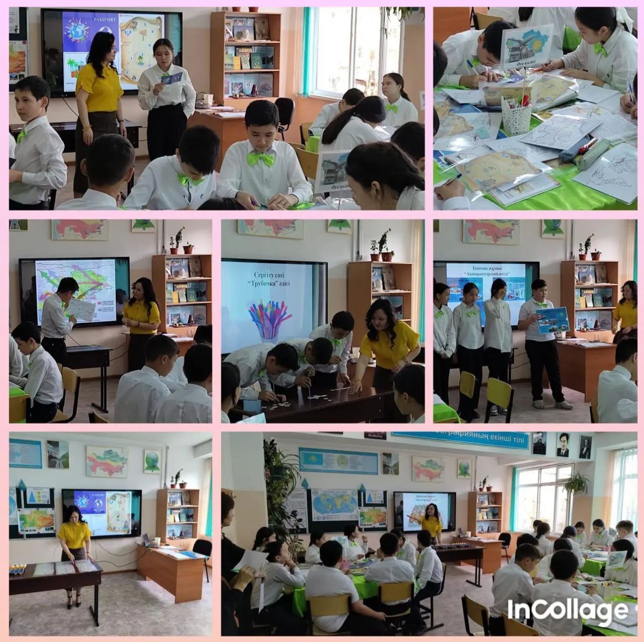 17.04.2024 жылы "Ұшқын" тобының 3-ші цикл, 1-ші зерттеу сабағы 7 "Б" сыныбында география пәні бойынша "Көлік инфрақұрылымы" тақырыбында өтті. "Қыдырып қайтайық" әдісі арқылы психалогиялық ахуал туғызды. Сабақта айқындалған проблемалық сұраққа байланысты бағалаудың бірнеше түрін қолданды. "Топтарды" бағалау, "Қолпаштау сөздер", "10 балл" арқылы бағалады. "Жұмыртқа әдісі", "Кескін картамен жұмыс", "Мәліметтер сөйлейді" әдіс-тәсілдері арқылы тапсырмаларды орындатқызды. "Трубочка" әдісі арқылы сергіту сәтін жүргізді. Оқушылар "Білім қазынасы" арқылы кері байланыс жүргізді.