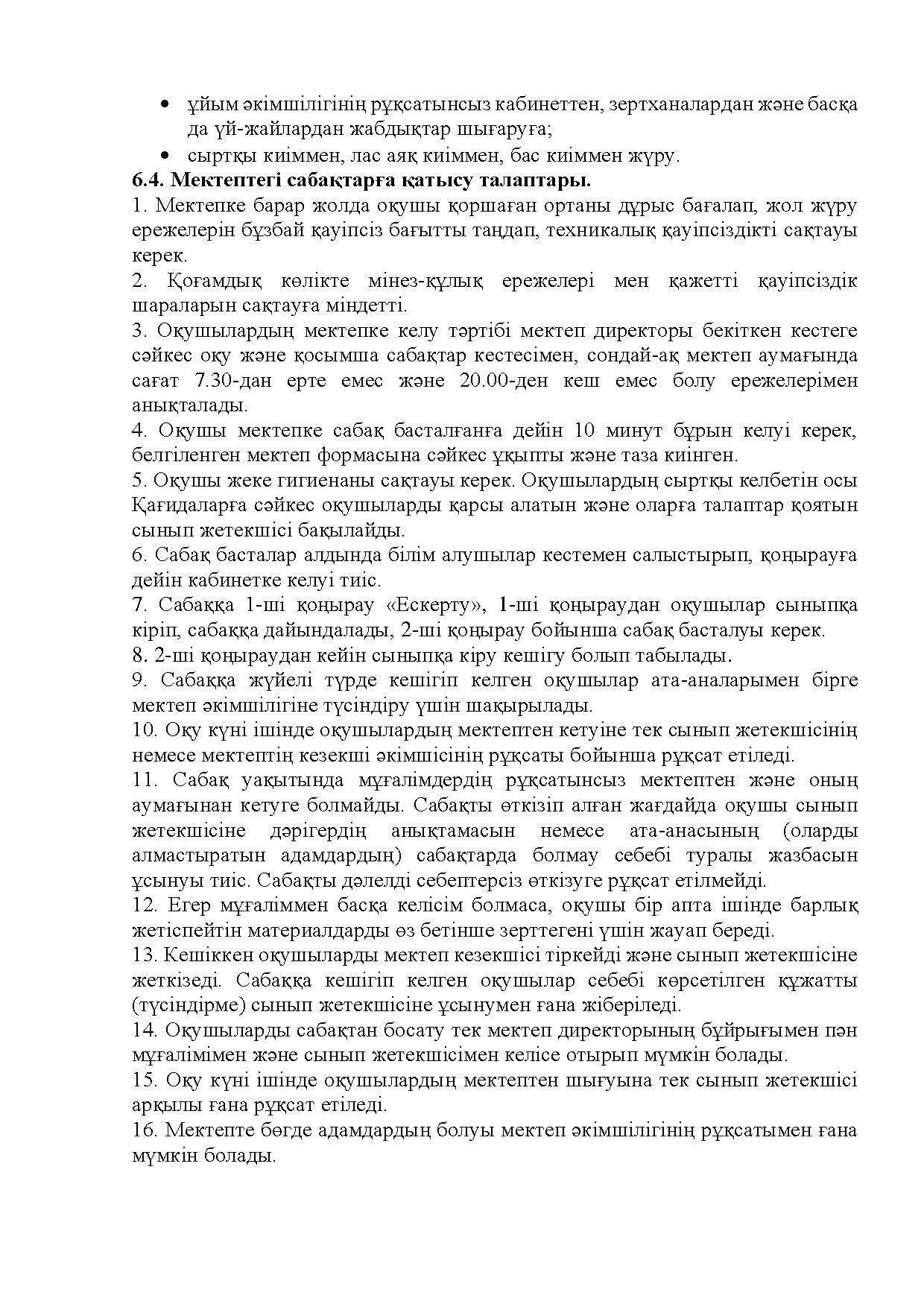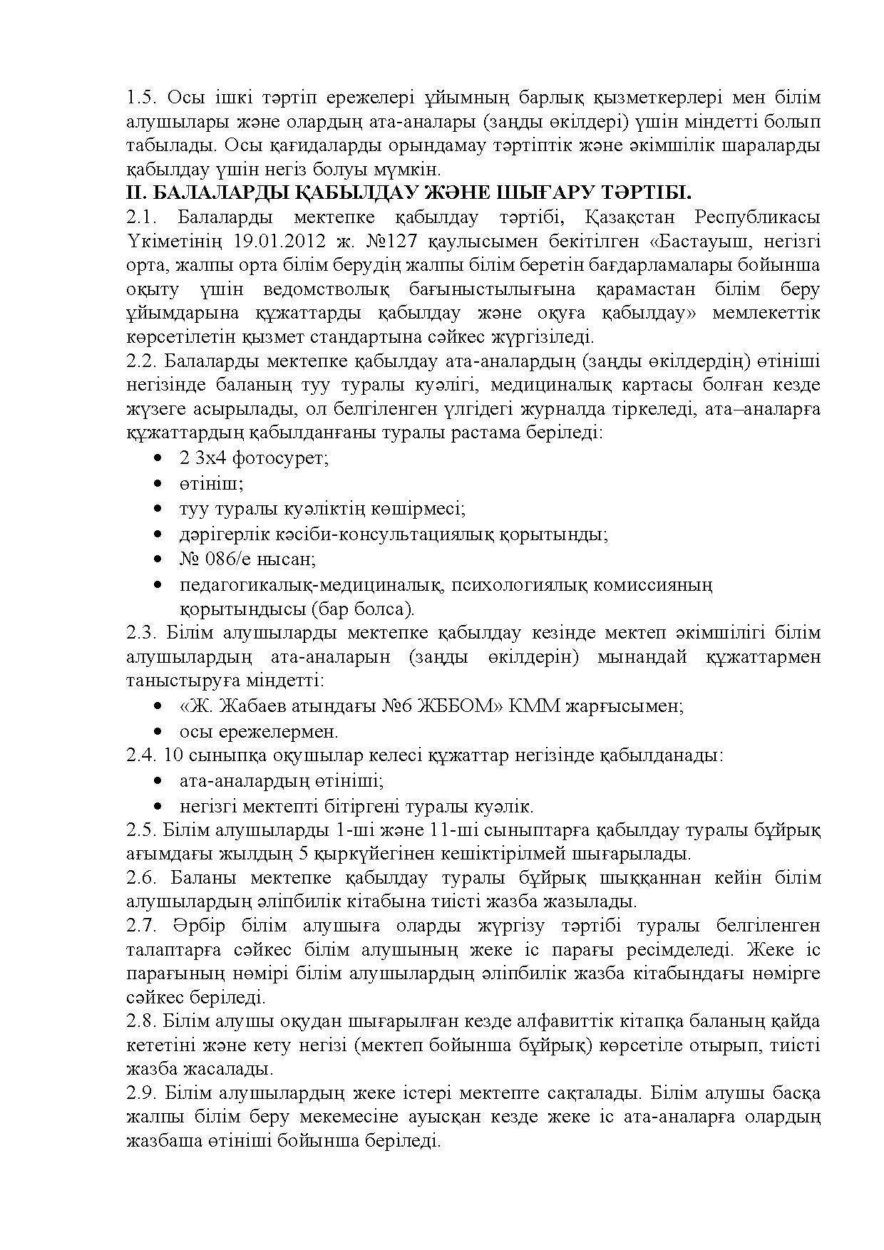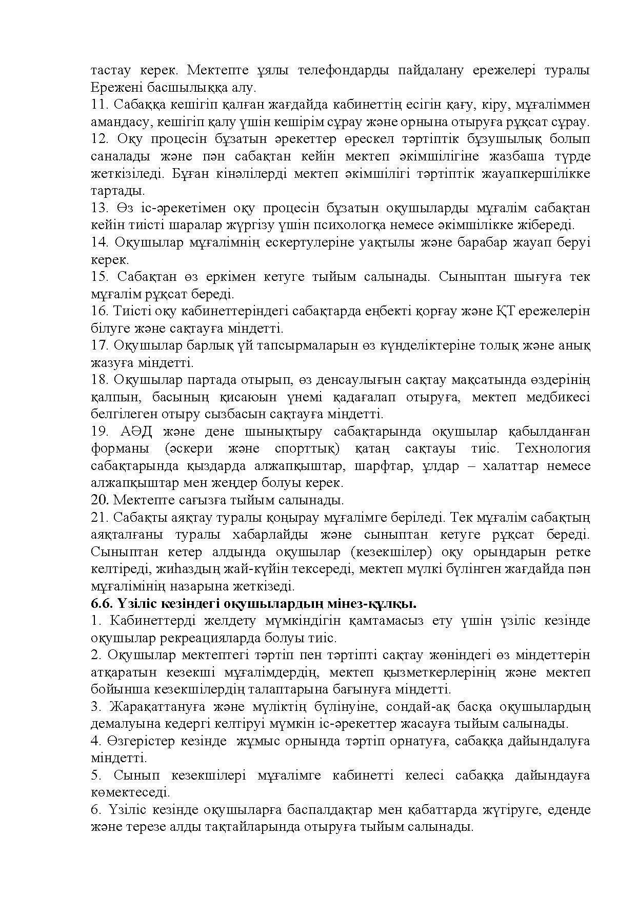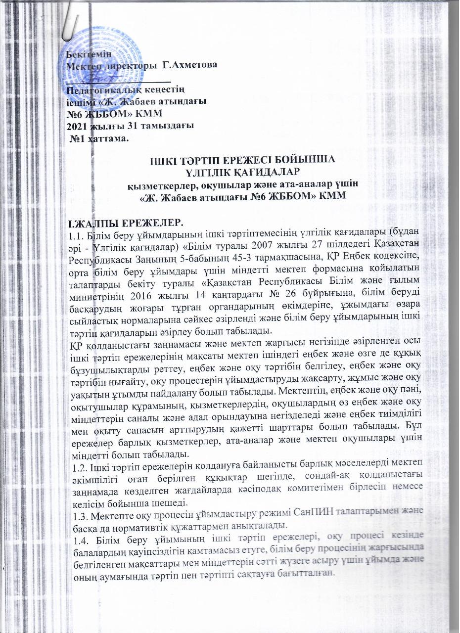Ішкі тәртіп ережесі бойынша үлгілік қағидалар » АЛМАТЫ ОБЛЫСЫ БІЛІМ БАСҚАРМАСЫНЫҢ ТАЛҒАР АУДАНЫ БОЙЫНША БІЛІМ БӨЛІМІ МЕМЛЕКЕТТІК МЕКЕМЕСІНІҢ “ЖАМБЫЛ ЖАБАЕВ АТЫНДАҒЫ №6 ЖАЛПЫ БІЛІМ БЕРЕТІН ОРТА МЕКТЕБІ” КОММУНАЛДЫҚ МЕМЛЕКЕТТІК МЕКЕМЕСІ