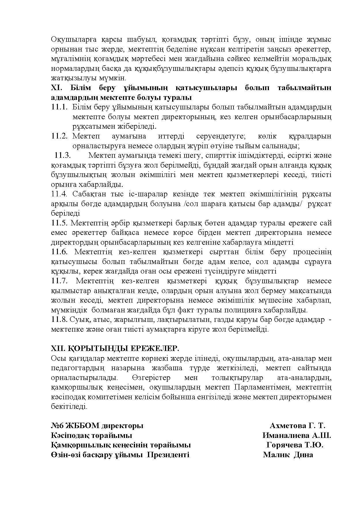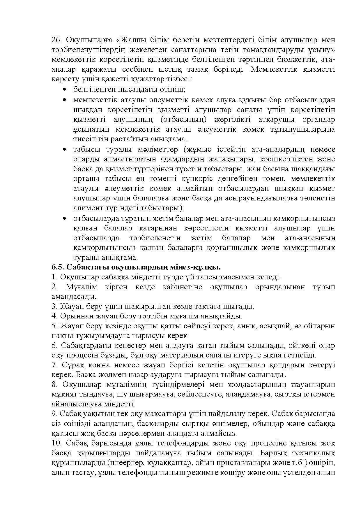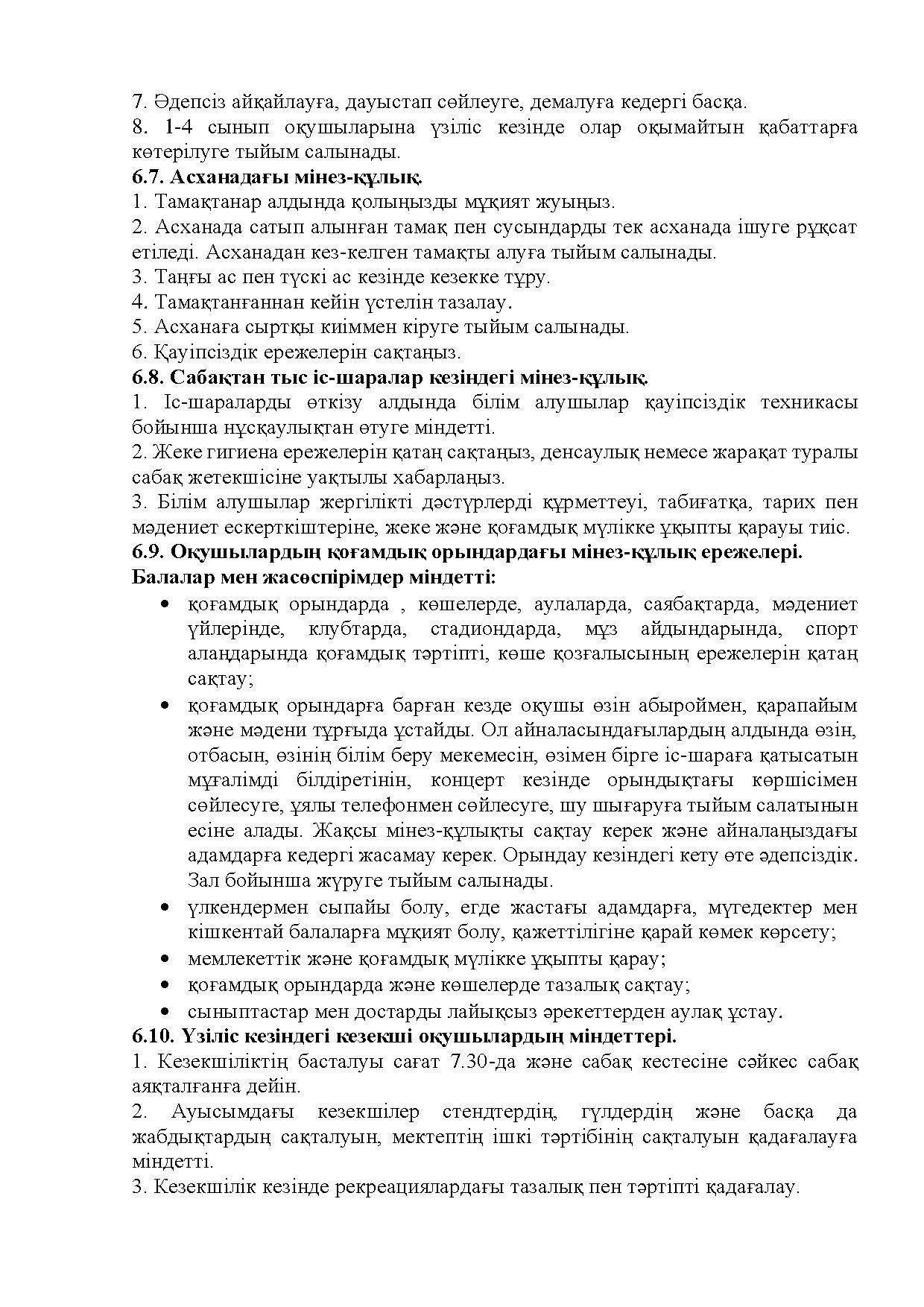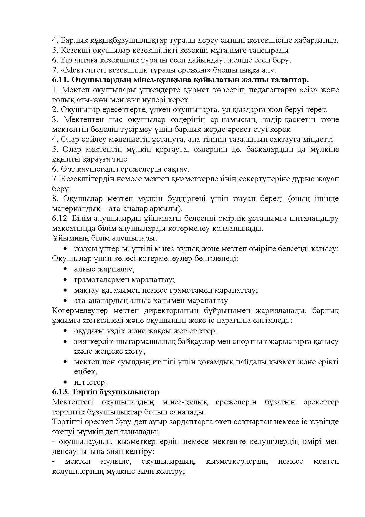 Ішкі тәртіп ережесі бойынша үлгілік қағидалар » АЛМАТЫ ОБЛЫСЫ БІЛІМ БАСҚАРМАСЫНЫҢ ТАЛҒАР АУДАНЫ БОЙЫНША БІЛІМ БӨЛІМІ МЕМЛЕКЕТТІК МЕКЕМЕСІНІҢ “ЖАМБЫЛ ЖАБАЕВ АТЫНДАҒЫ №6 ЖАЛПЫ БІЛІМ БЕРЕТІН ОРТА МЕКТЕБІ” КОММУНАЛДЫҚ МЕМЛЕКЕТТІК МЕКЕМЕСІ