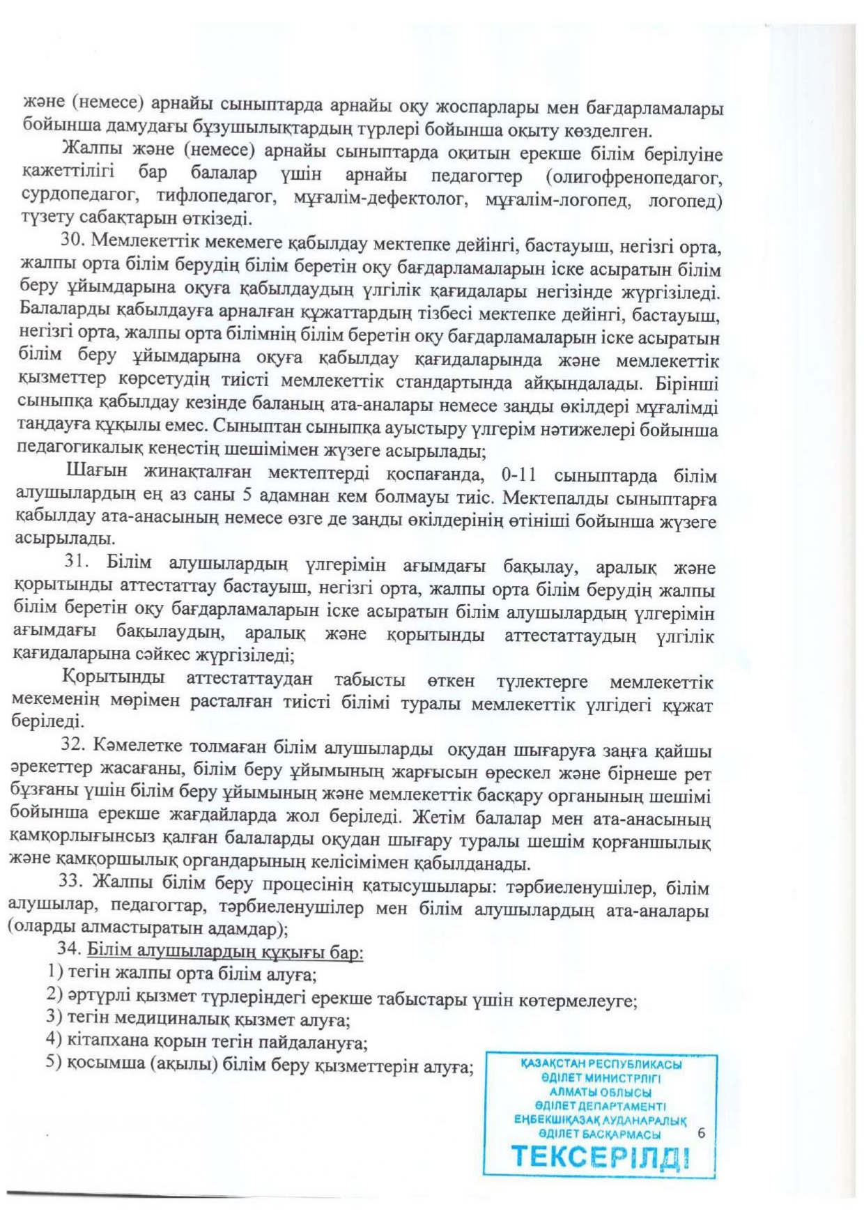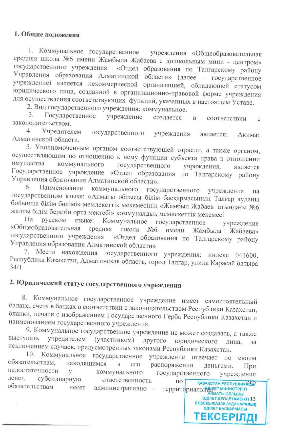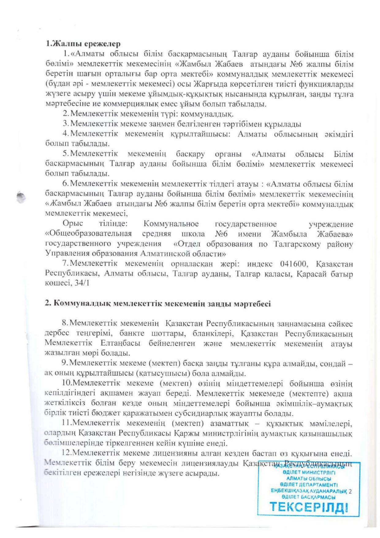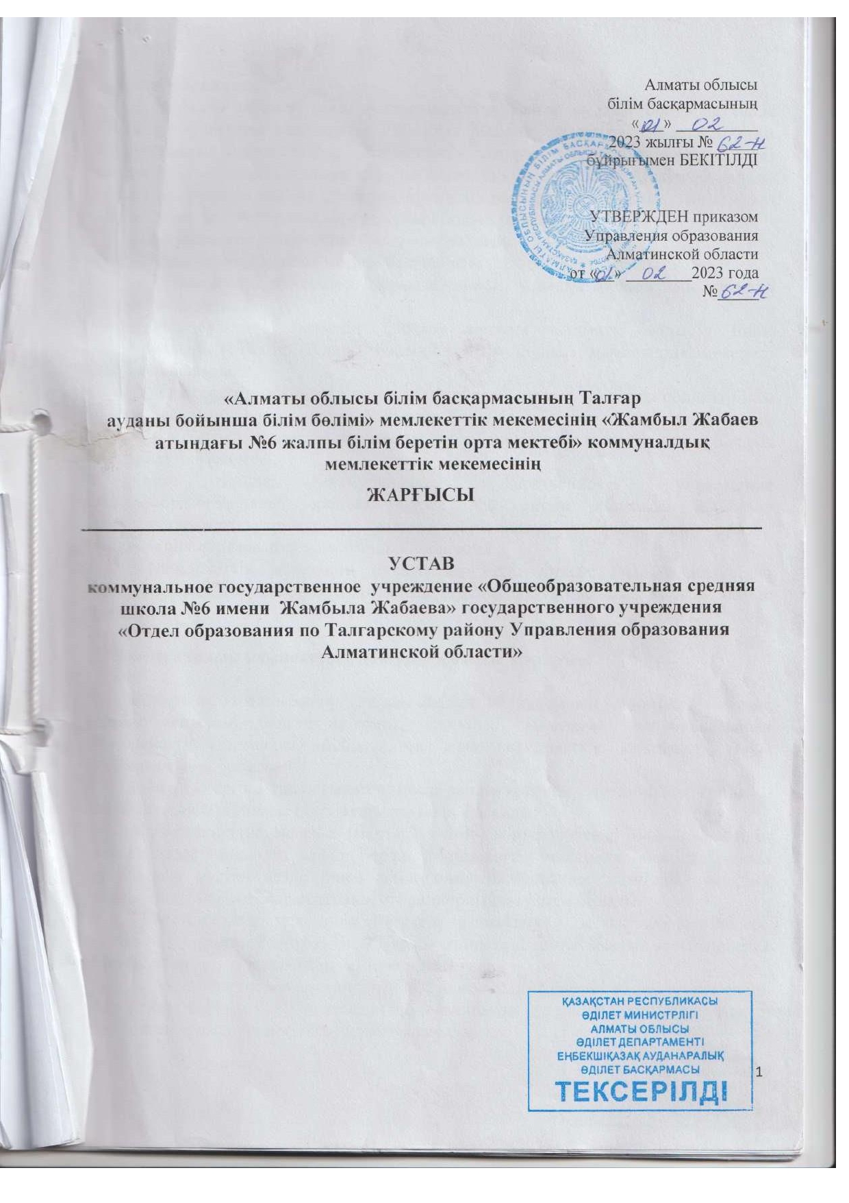 Жарғы » АЛМАТЫ ОБЛЫСЫ БІЛІМ БАСҚАРМАСЫНЫҢ ТАЛҒАР АУДАНЫ БОЙЫНША БІЛІМ БӨЛІМІ МЕМЛЕКЕТТІК МЕКЕМЕСІНІҢ “ЖАМБЫЛ ЖАБАЕВ АТЫНДАҒЫ №6 ЖАЛПЫ БІЛІМ БЕРЕТІН ОРТА МЕКТЕБІ” КОММУНАЛДЫҚ МЕМЛЕКЕТТІК МЕКЕМЕСІ