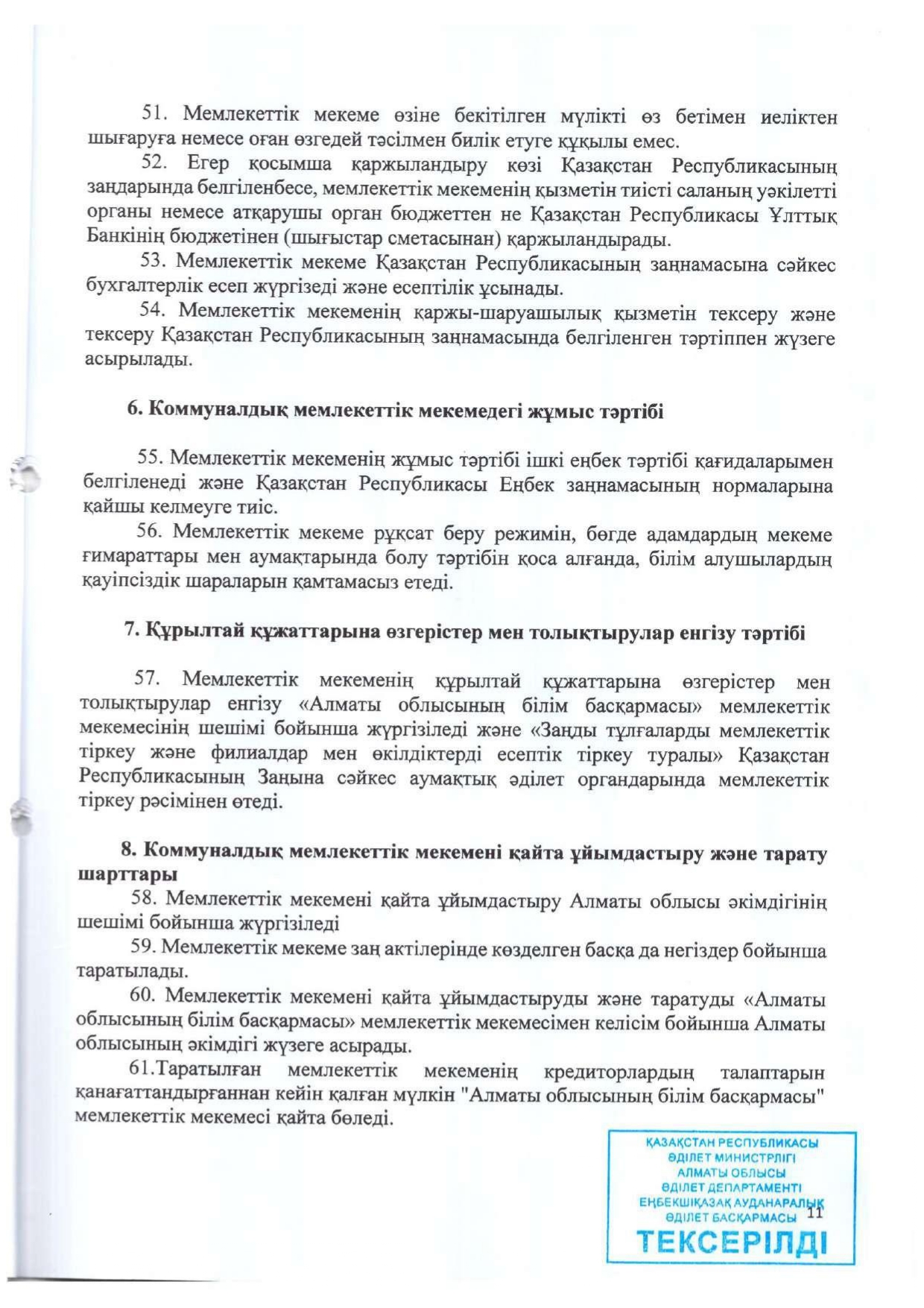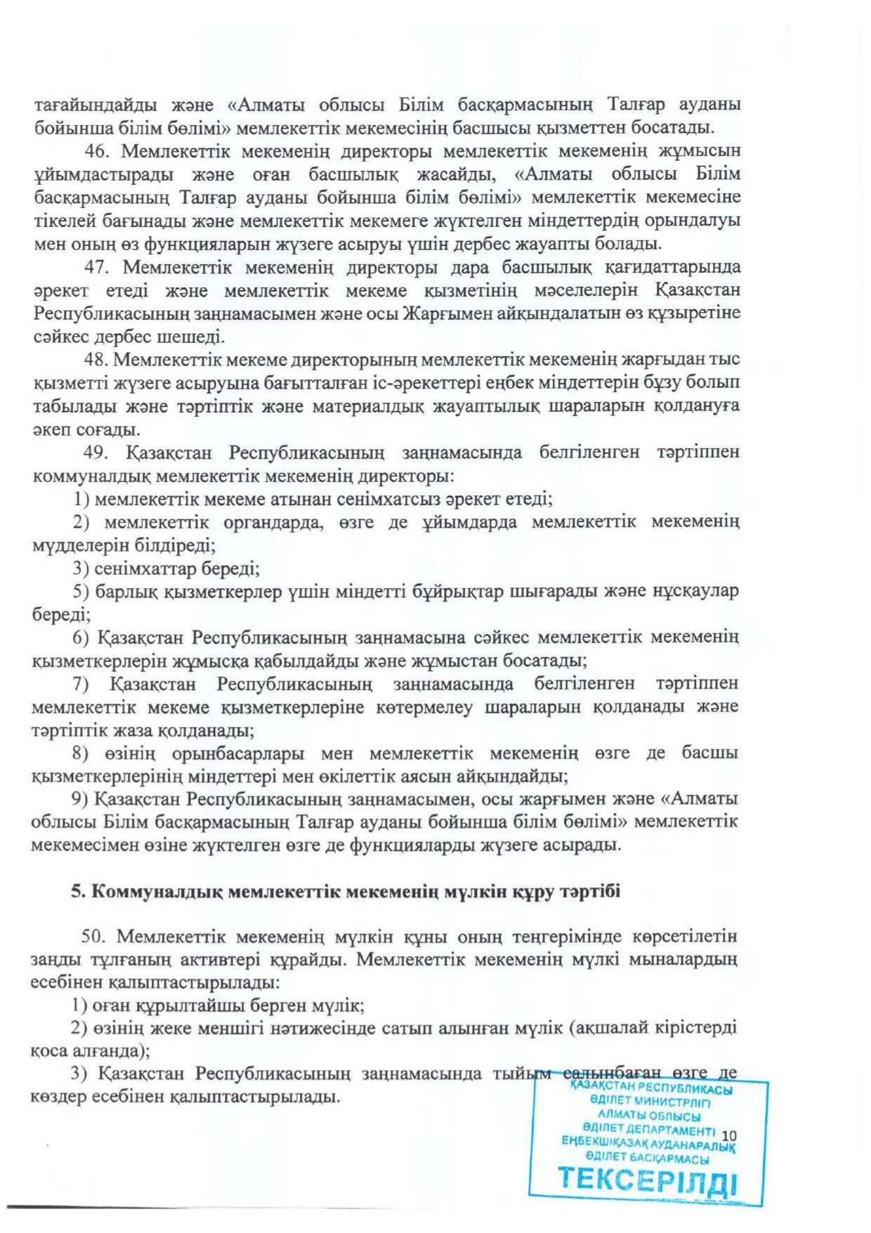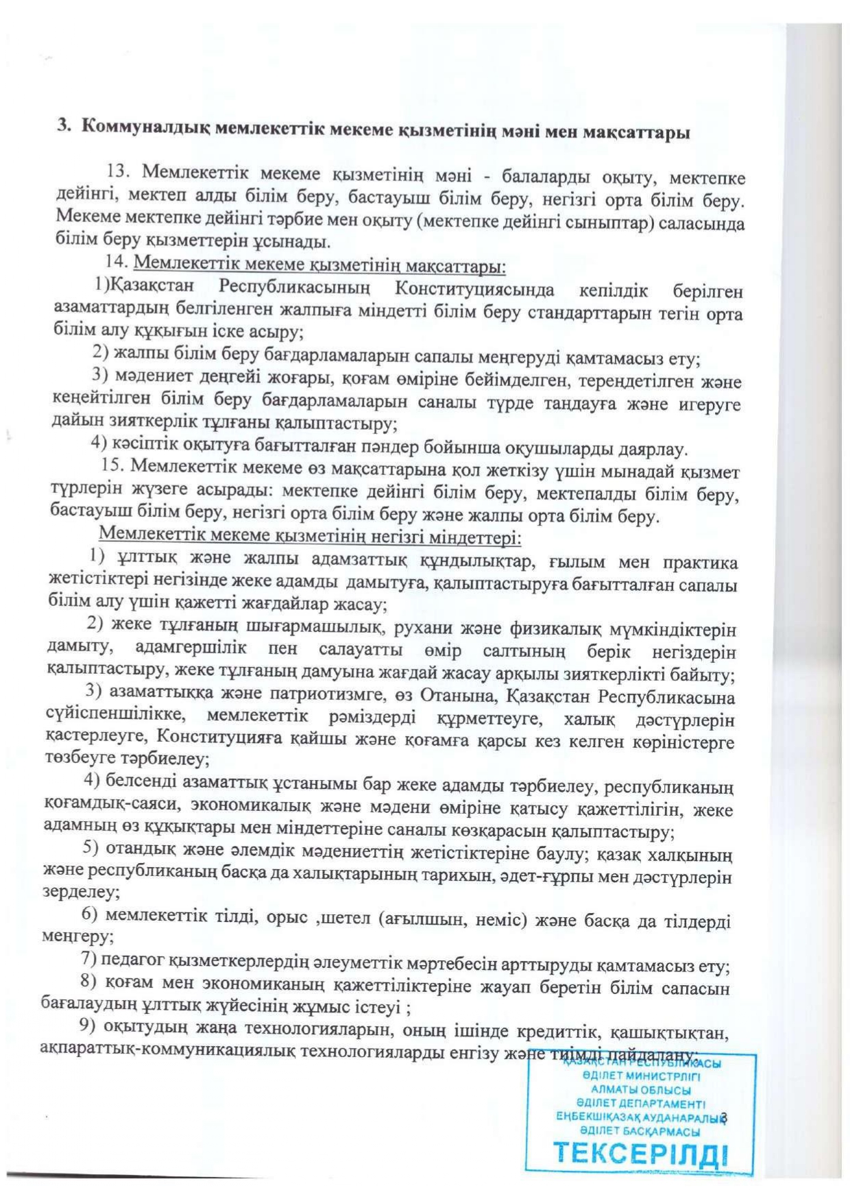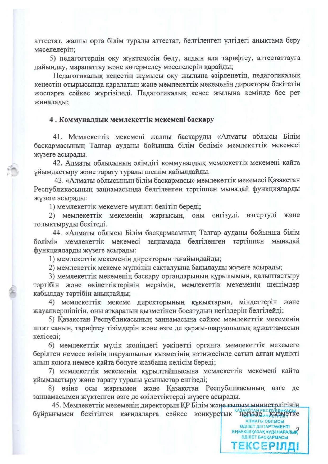 Жарғы » АЛМАТЫ ОБЛЫСЫ БІЛІМ БАСҚАРМАСЫНЫҢ ТАЛҒАР АУДАНЫ БОЙЫНША БІЛІМ БӨЛІМІ МЕМЛЕКЕТТІК МЕКЕМЕСІНІҢ “ЖАМБЫЛ ЖАБАЕВ АТЫНДАҒЫ №6 ЖАЛПЫ БІЛІМ БЕРЕТІН ОРТА МЕКТЕБІ” КОММУНАЛДЫҚ МЕМЛЕКЕТТІК МЕКЕМЕСІ