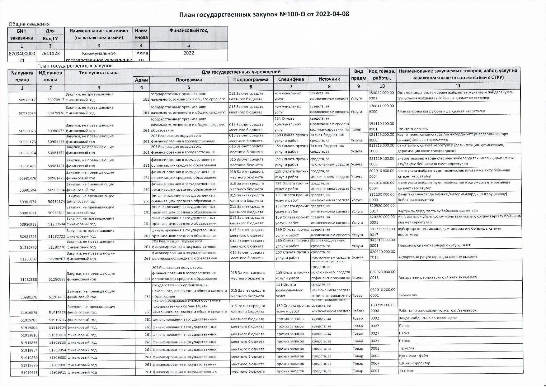 Мемлекеттік сатып алу жоспары » АЛМАТЫ ОБЛЫСЫ БІЛІМ БАСҚАРМАСЫНЫҢ ТАЛҒАР АУДАНЫ БОЙЫНША БІЛІМ БӨЛІМІ МЕМЛЕКЕТТІК МЕКЕМЕСІНІҢ “ЖАМБЫЛ ЖАБАЕВ АТЫНДАҒЫ №6 ЖАЛПЫ БІЛІМ БЕРЕТІН ОРТА МЕКТЕБІ” КОММУНАЛДЫҚ МЕМЛЕКЕТТІК МЕКЕМЕСІ