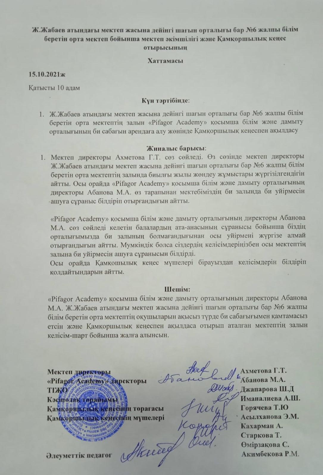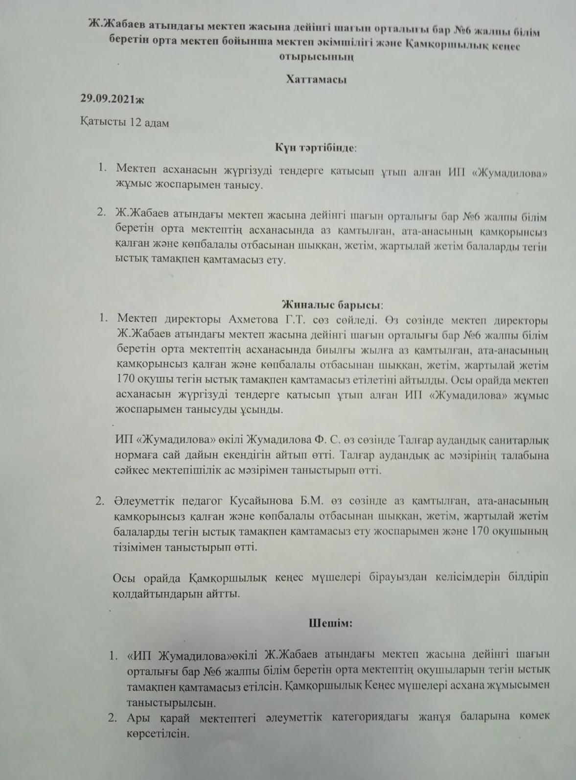 2021/2022 оқу жылы қамқоршылық кеңестің хаттамасы » АЛМАТЫ ОБЛЫСЫ БІЛІМ БАСҚАРМАСЫНЫҢ ТАЛҒАР АУДАНЫ БОЙЫНША БІЛІМ БӨЛІМІ МЕМЛЕКЕТТІК МЕКЕМЕСІНІҢ “ЖАМБЫЛ ЖАБАЕВ АТЫНДАҒЫ №6 ЖАЛПЫ БІЛІМ БЕРЕТІН ОРТА МЕКТЕБІ” КОММУНАЛДЫҚ МЕМЛЕКЕТТІК МЕКЕМЕСІ