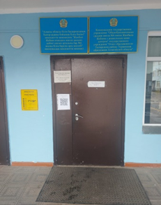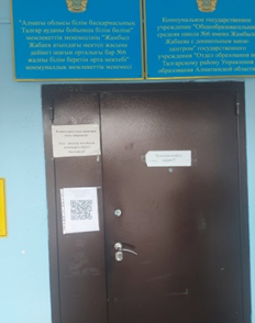 Мектептің кіре беріс есігіне QR-коды бар тақтайша 130 см биіктікте ілінді.