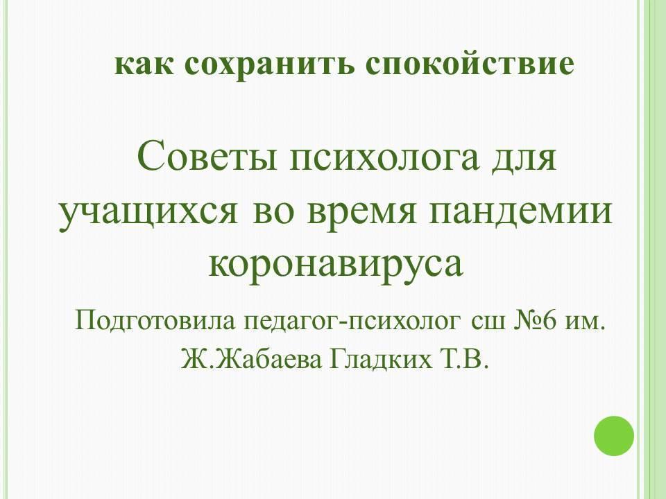 Советы психолога для учащихся во время пандемии коронавируса » АЛМАТЫ ОБЛЫСЫ БІЛІМ БАСҚАРМАСЫНЫҢ ТАЛҒАР АУДАНЫ БОЙЫНША БІЛІМ БӨЛІМІ МЕМЛЕКЕТТІК МЕКЕМЕСІНІҢ “ЖАМБЫЛ ЖАБАЕВ АТЫНДАҒЫ №6 ЖАЛПЫ БІЛІМ БЕРЕТІН ОРТА МЕКТЕБІ” КОММУНАЛДЫҚ МЕМЛЕКЕТТІК МЕКЕМЕСІ