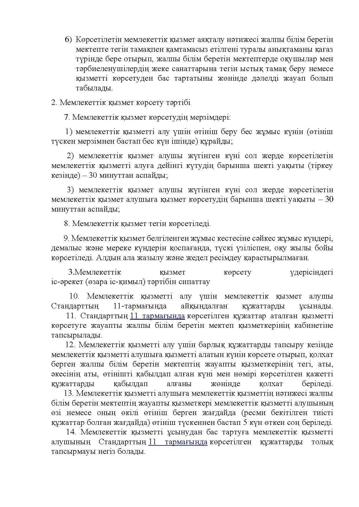 Мемлекеттік қызмет көрсету стандарты » АЛМАТЫ ОБЛЫСЫ БІЛІМ БАСҚАРМАСЫНЫҢ ТАЛҒАР АУДАНЫ БОЙЫНША БІЛІМ БӨЛІМІ МЕМЛЕКЕТТІК МЕКЕМЕСІНІҢ “ЖАМБЫЛ ЖАБАЕВ АТЫНДАҒЫ №6 ЖАЛПЫ БІЛІМ БЕРЕТІН ОРТА МЕКТЕБІ” КОММУНАЛДЫҚ МЕМЛЕКЕТТІК МЕКЕМЕСІ