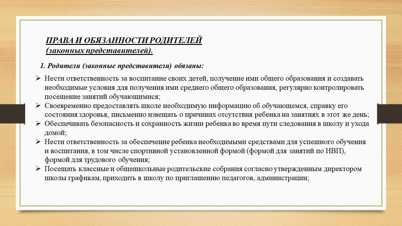ПРАВА И ОБЯЗАННОСТИ РОДИТЕЛЕЙ