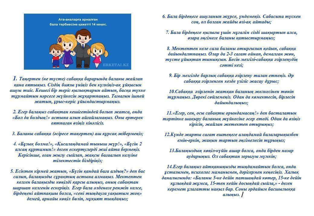 Ата - анаға 14 кеңес » АЛМАТЫ ОБЛЫСЫ БІЛІМ БАСҚАРМАСЫНЫҢ ТАЛҒАР АУДАНЫ БОЙЫНША БІЛІМ БӨЛІМІ МЕМЛЕКЕТТІК МЕКЕМЕСІНІҢ “ЖАМБЫЛ ЖАБАЕВ АТЫНДАҒЫ №6 ЖАЛПЫ БІЛІМ БЕРЕТІН ОРТА МЕКТЕБІ” КОММУНАЛДЫҚ МЕМЛЕКЕТТІК МЕКЕМЕСІ