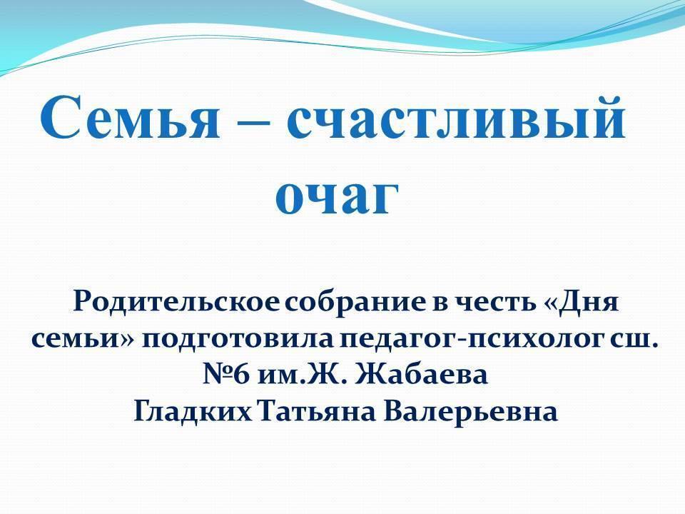 Семья – счастливый очаг » АЛМАТЫ ОБЛЫСЫ БІЛІМ БАСҚАРМАСЫНЫҢ ТАЛҒАР АУДАНЫ БОЙЫНША БІЛІМ БӨЛІМІ МЕМЛЕКЕТТІК МЕКЕМЕСІНІҢ “ЖАМБЫЛ ЖАБАЕВ АТЫНДАҒЫ №6 ЖАЛПЫ БІЛІМ БЕРЕТІН ОРТА МЕКТЕБІ” КОММУНАЛДЫҚ МЕМЛЕКЕТТІК МЕКЕМЕСІ