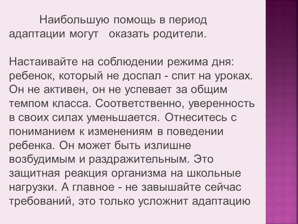 Помощь родителей в период адаптации.