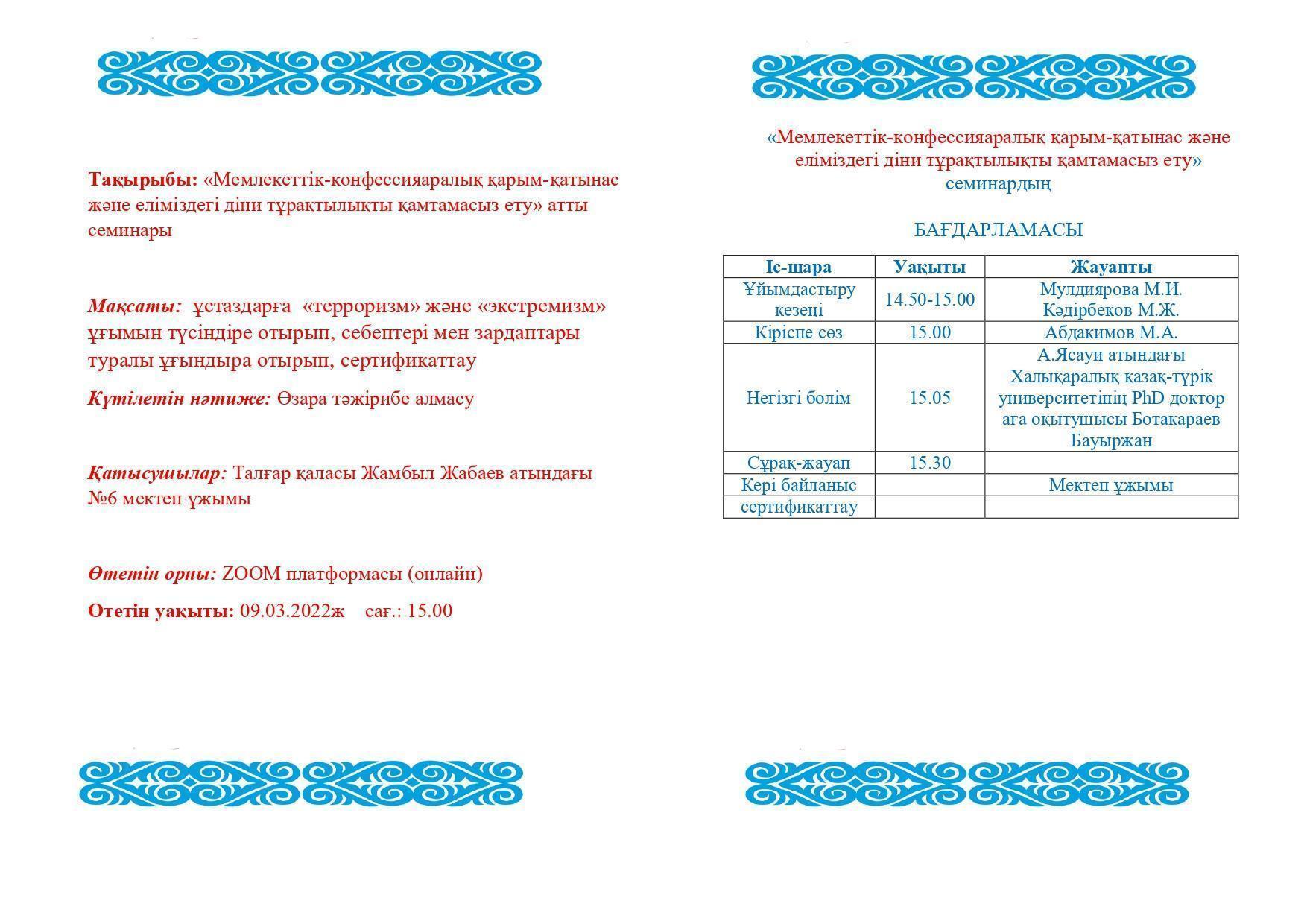 Курс » АЛМАТЫ ОБЛЫСЫ БІЛІМ БАСҚАРМАСЫНЫҢ ТАЛҒАР АУДАНЫ БОЙЫНША БІЛІМ БӨЛІМІ МЕМЛЕКЕТТІК МЕКЕМЕСІНІҢ “ЖАМБЫЛ ЖАБАЕВ АТЫНДАҒЫ №6 ЖАЛПЫ БІЛІМ БЕРЕТІН ОРТА МЕКТЕБІ” КОММУНАЛДЫҚ МЕМЛЕКЕТТІК МЕКЕМЕСІ