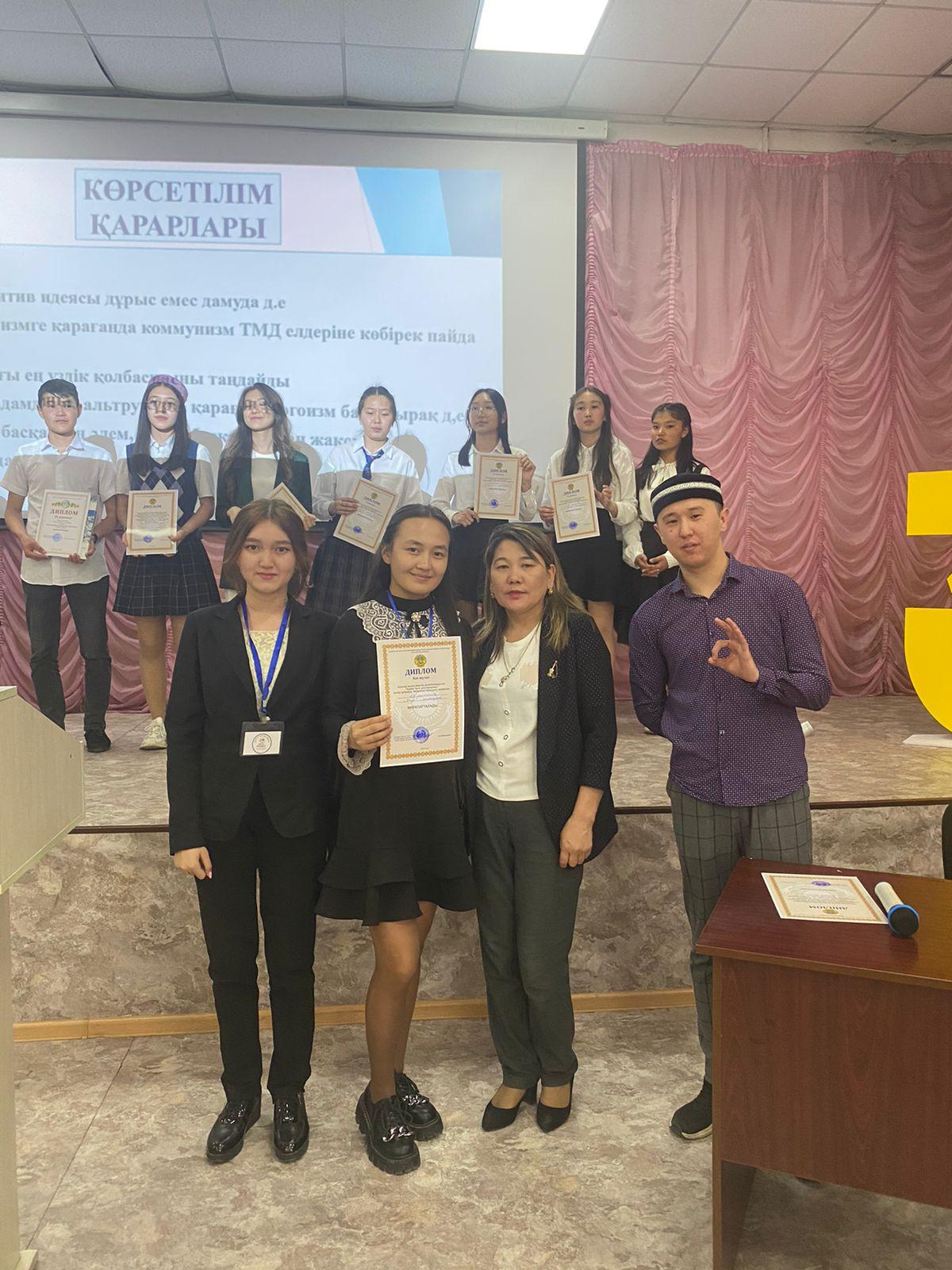 Бүгін мектебімізде балалар жылы аясында ұйымдастырылған "Бүгінгі бала-ұлт болашағы" атты аудандық дебаттық турнирі өтті. Туринирде мектебіміздің оқушыларынан құралған "SHYN" командасы БАС ЖҮЛДЕНІ иеленді. Команда мүшелері Жанпейіс Қарақат пен Малик Дина өздерінің тіл байлықтарымен көзге түсіп,12 мектеп ішінен озып шығып, облыстық турнирге жолдама алды.