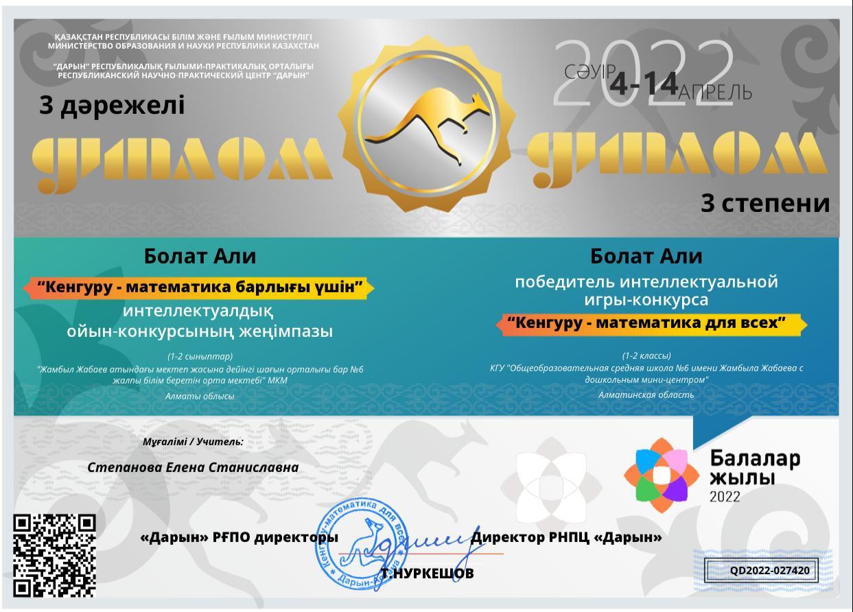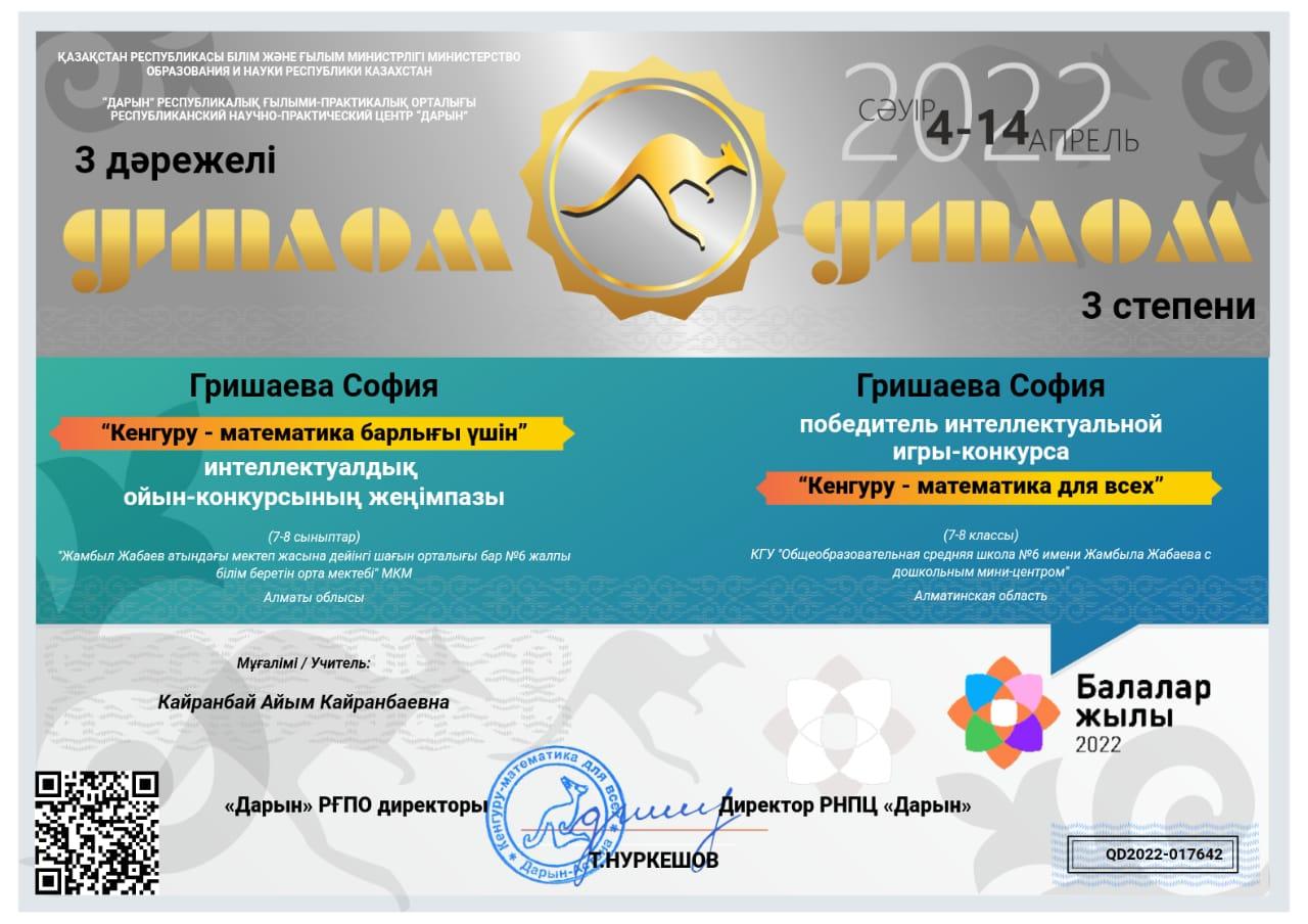 Оқушылардың зияткерлік жарыстарға қатысуы » АЛМАТЫ ОБЛЫСЫ БІЛІМ БАСҚАРМАСЫНЫҢ ТАЛҒАР АУДАНЫ БОЙЫНША БІЛІМ БӨЛІМІ МЕМЛЕКЕТТІК МЕКЕМЕСІНІҢ “ЖАМБЫЛ ЖАБАЕВ АТЫНДАҒЫ №6 ЖАЛПЫ БІЛІМ БЕРЕТІН ОРТА МЕКТЕБІ” КОММУНАЛДЫҚ МЕМЛЕКЕТТІК МЕКЕМЕСІ
